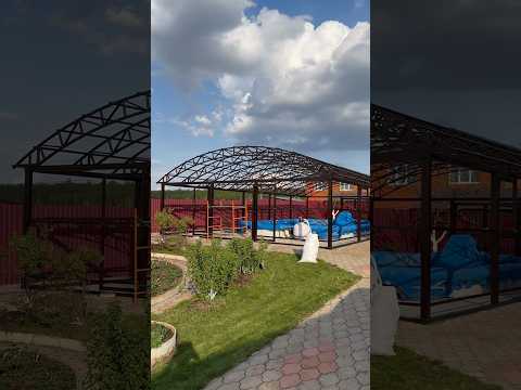 Собрали навес для дачи из металла с кровлей из металочерепицы