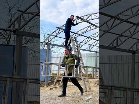 Навес для бассейна 16*8,5 второй день монтажа
